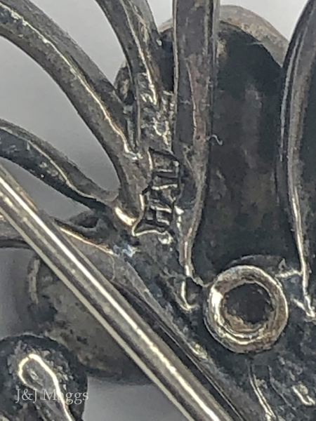 Silver brooch by Harold A. Lazarus with garnet pastes