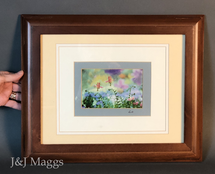 A matted and framed print, signed with the initials L O on the mat. Purchased with #1003, by the same artist.