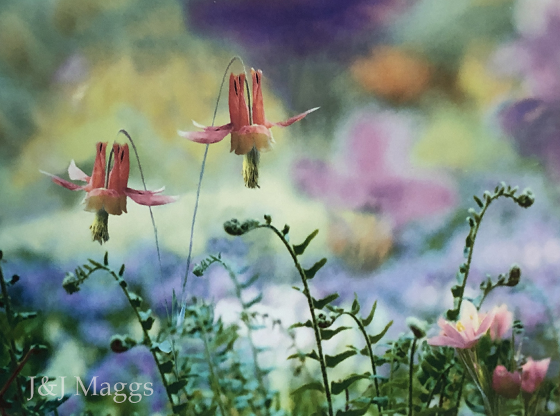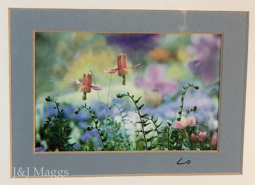 Wild columbine flowers print in a beautiful hardwood frame