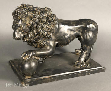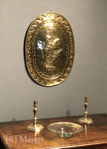 Two 18th-century Delft tiles, mounted in iron for use as serving pieces