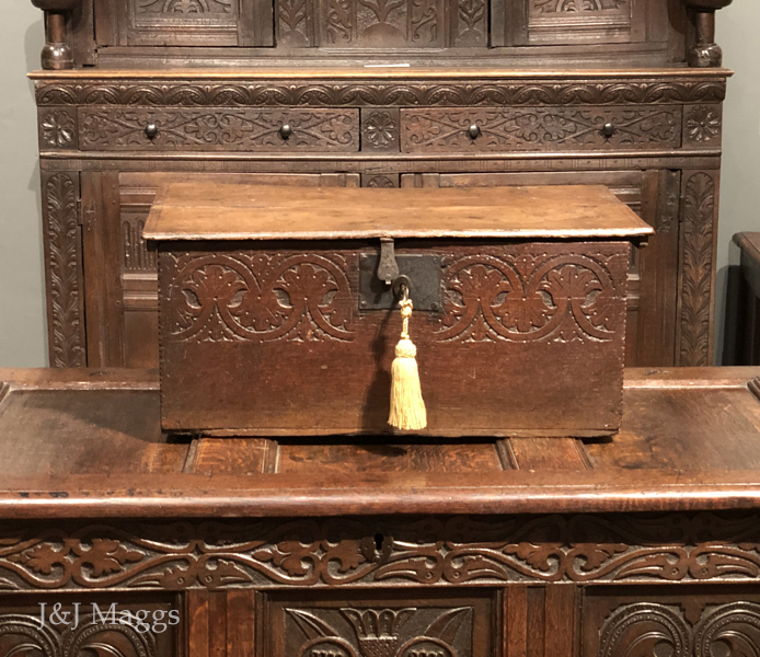 A carved oak bible box