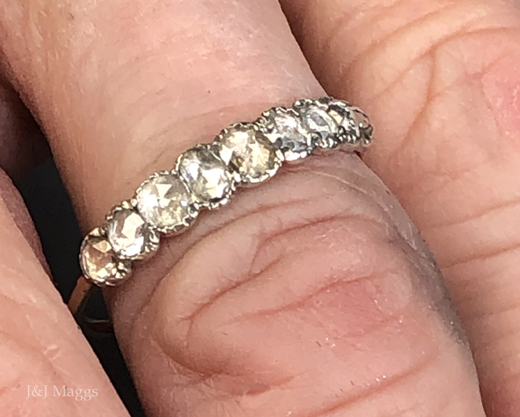 Georgian rose-cut diamond nine-stone half-hoop ring