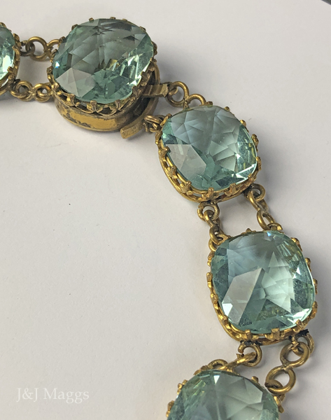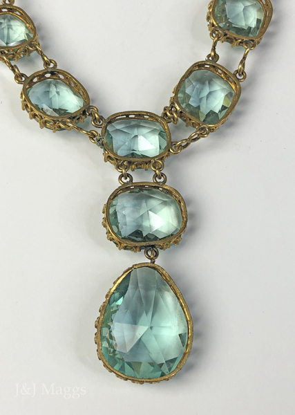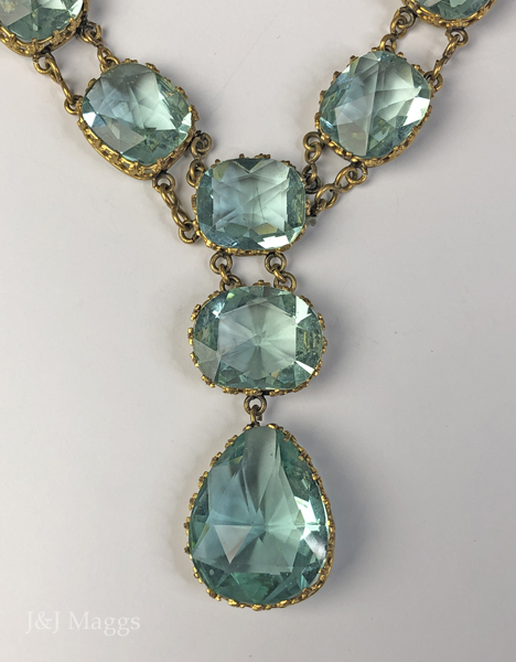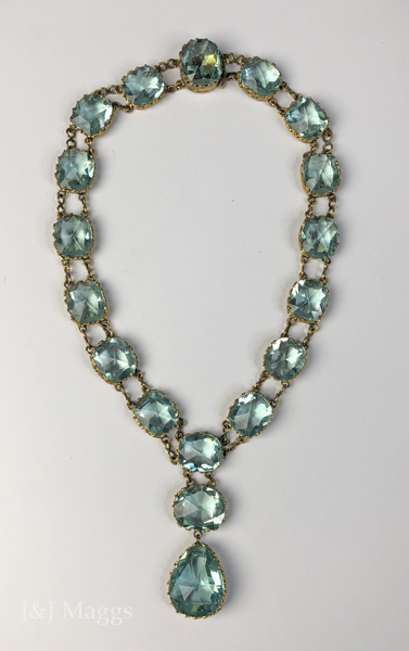 Glorious Georgian rose-cut aqua paste stone rivière necklace with double drop