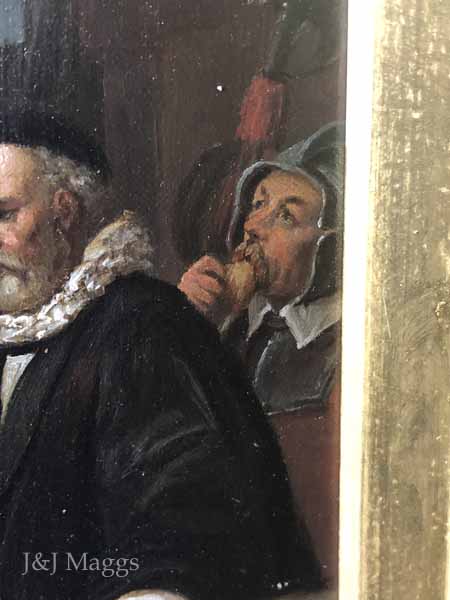 A paper tag on the back of the frame credits both “Willett” and Delaroche, and gives the work its title. The original was painted in 1836; this copy was probably painted near the end of the 19th century.