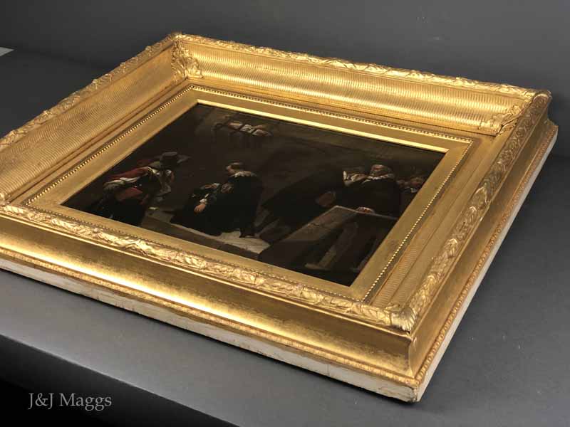 The canvas is on its original stretcher and is mounted in an outstanding period frame. The painting has been professionally cleaned, and the frame has been restored.