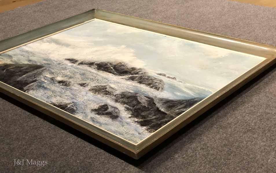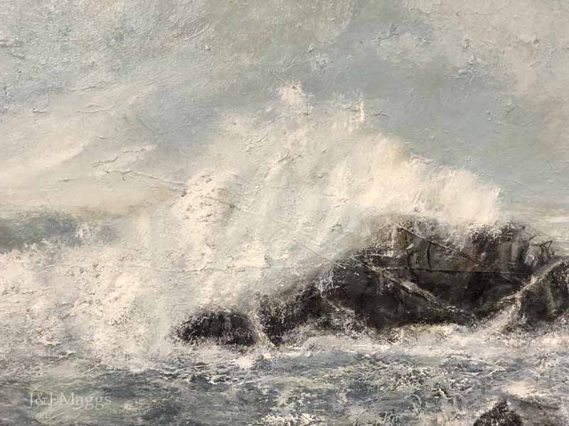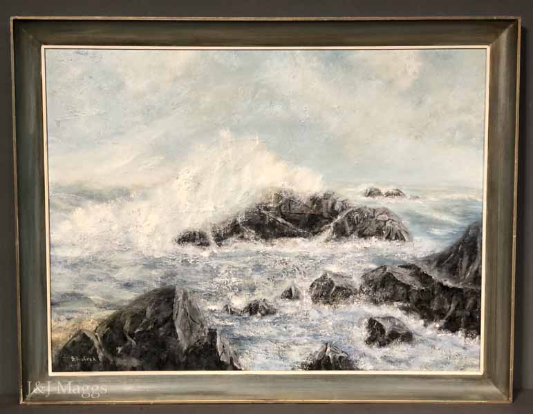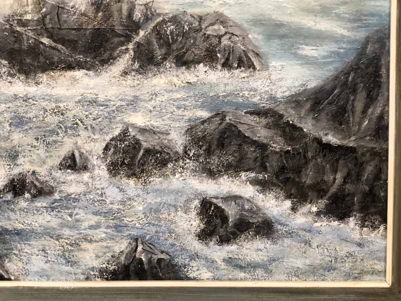 Rocks, waves, clouds, and sky, vividly portrayed by this Western Massachusetts scholar/painter.
