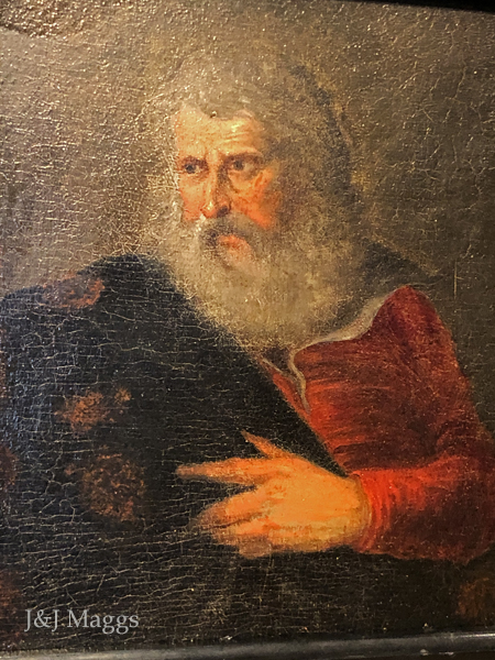 A rather biblical countenance, the subject gazes toward the distant light.