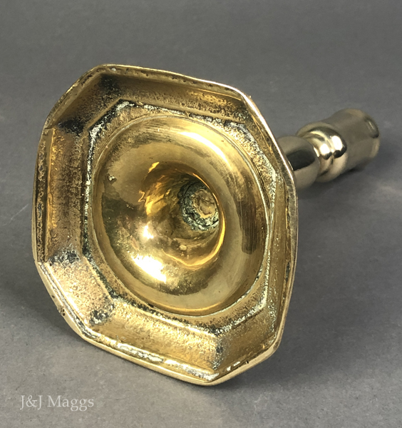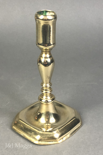 A petite brass candlestick with octagonal form