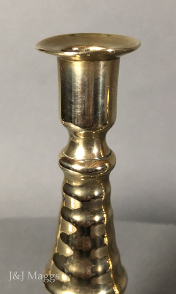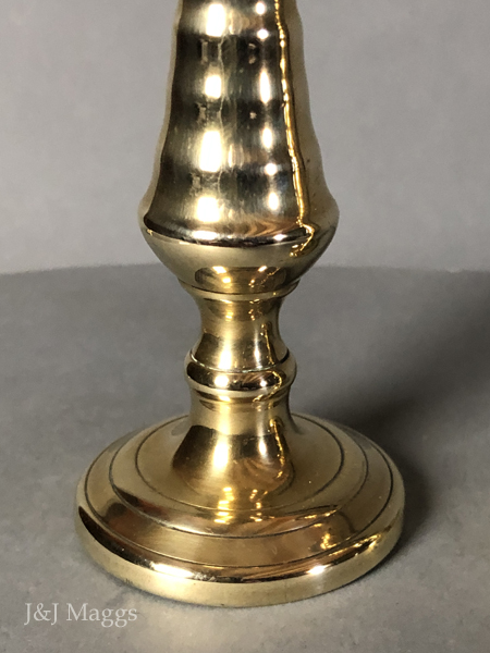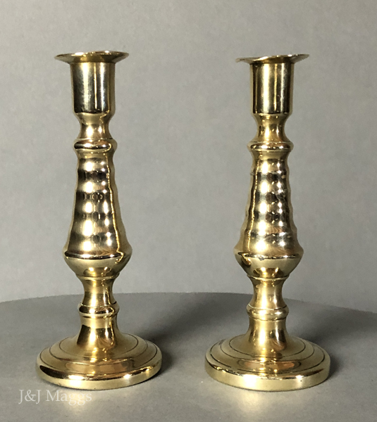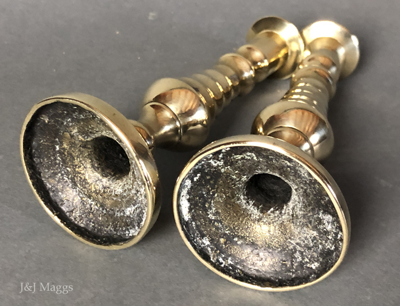 Intended to hold small candles for applying wax to sealed documents, these little candlesticks are packed with detail. The round, stepped bases support detailed shafts and tiny candle sockets.
