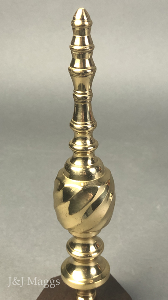 A striking brass finial, supported by an octagonal wooden base.