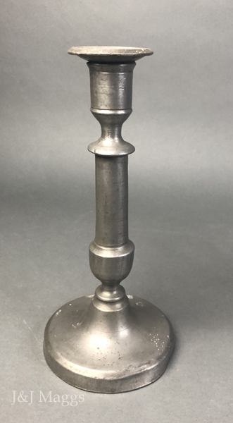 A tall pewter candlestick