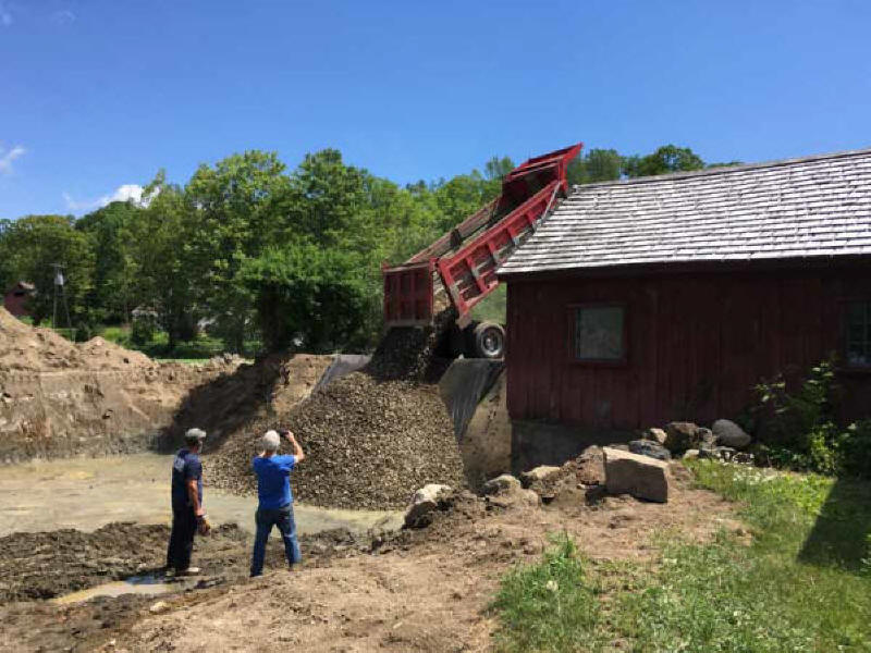 One of six truckloads of stone that will stabilize the floor