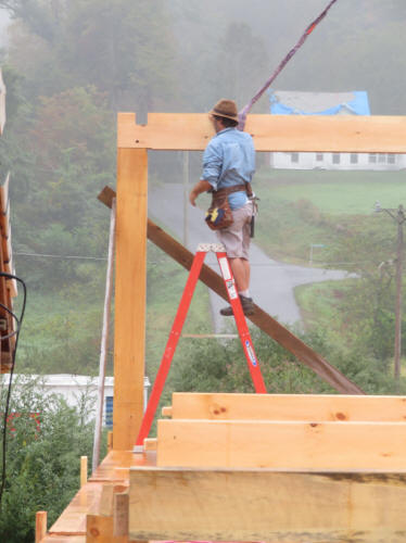 While Jesse continued to cut timbers, the Slocum team began making rafter trusses -