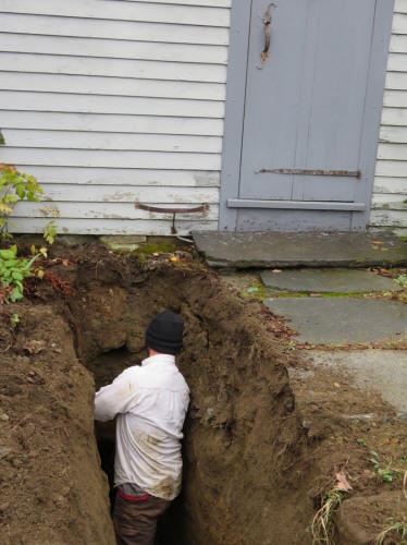 Nick Potter, installing water pipe and drain from the house.