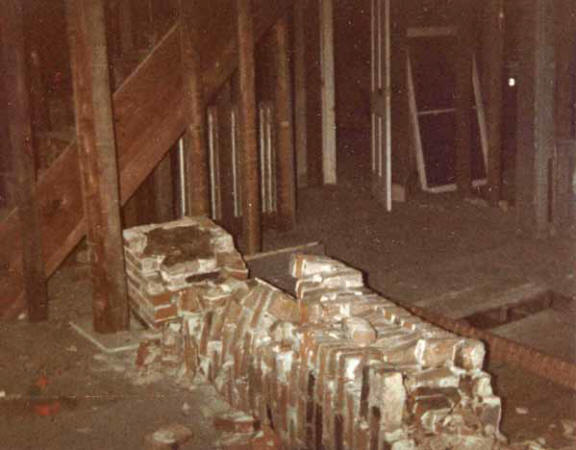 The original center chimney has already been replaced with the twin chimneys which we found lying on our front chamber floors.