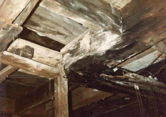 In the house, chimney girts had been notched to make room for the "modern" chimneys, weakening the frame of the house.