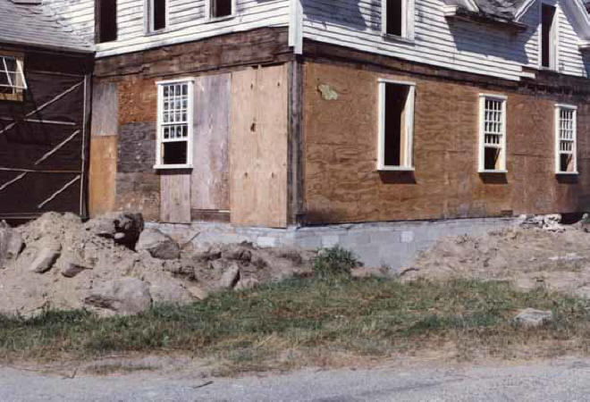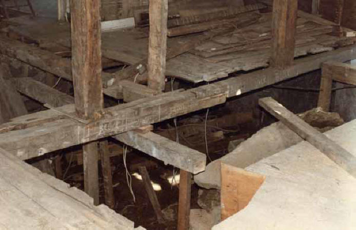 Only the southeast corner rested on huge 18th-century foundation stones, while the remainder was precariously perched atop the most makeshift arrangements.