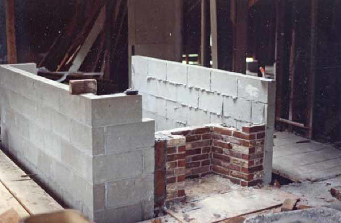 With the frame repaired, the masons could complete the central chimney.