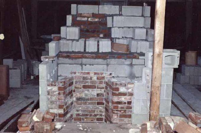 Paul Korpita and his crew of masons reconstructed the massive five-flue chimney for the front house.