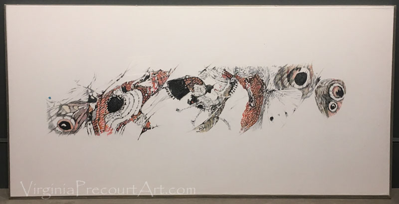 Virginia Strom Precourt traveled the world with an open mind and an eye for specific touchpoints that she could bring to her art. She could find inspiration in an outdoor market in Afghanistan, a misty morning in an English coastal fishing village, or, in “Nomads and the Demon Wind”, the “magical eye” mystery in the wings of a small moth, designed by nature to ward off predators.